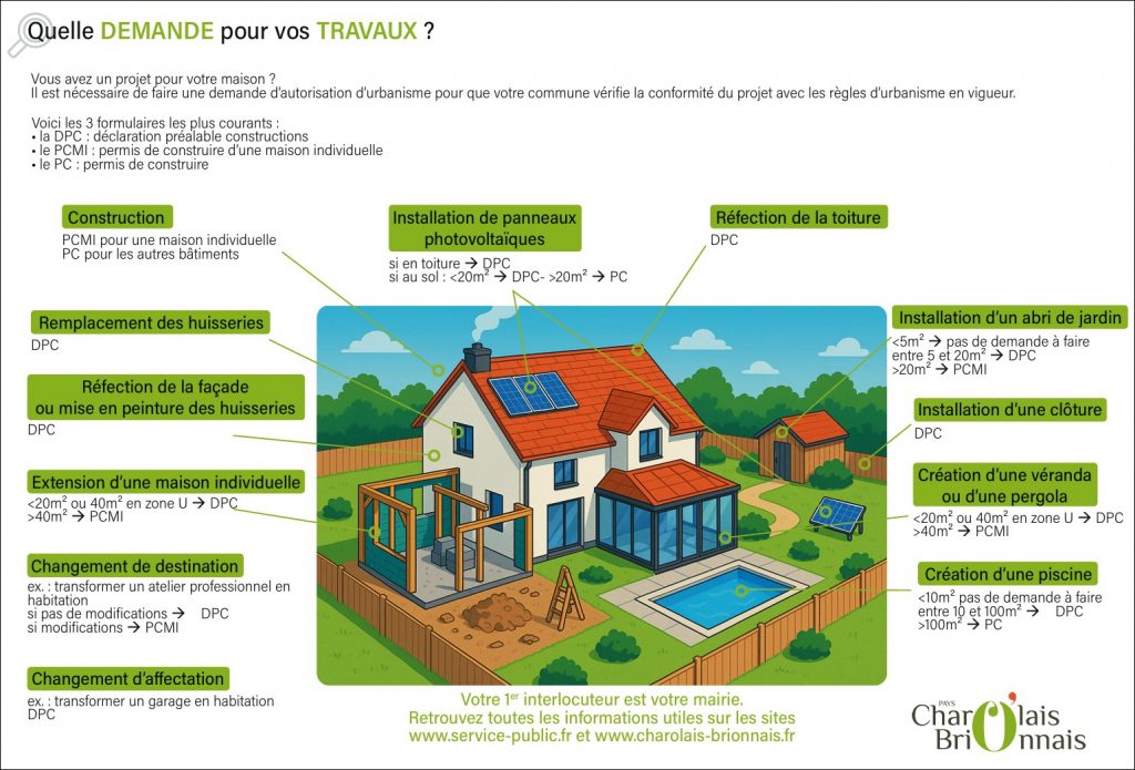 Le Plan Local d’Urbanisme Intercommunal (PLUI) est entré en vigueur le 2 mars 2026. Toutes vos demandes d’autorisations d’urbanisme sont soumises au nouveau Plan local d’urbanisme du Grand Charolais et sont instruites par le Pays Charolais-Brionnais : permis de construire, permis d’aménager, déclarations préalables, certificats d’urbanisme,…