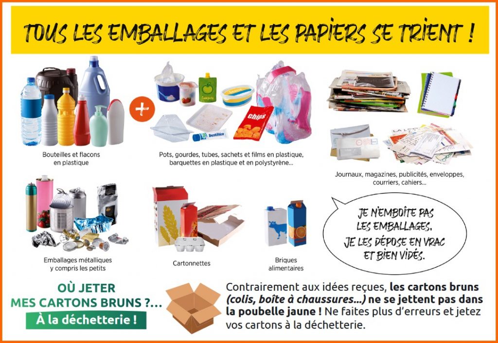 * Collecte des emballages et des papiers (poubelle jaune) : une semaine sur deux le vendredi après-midi des semaines paires.