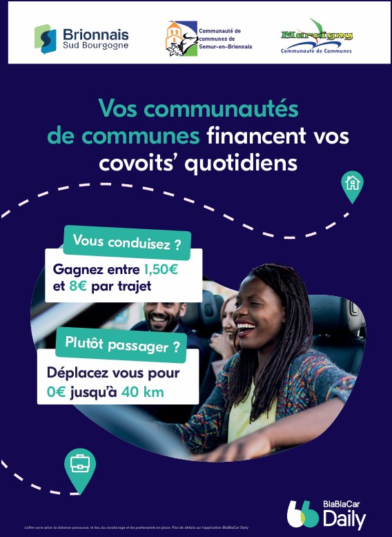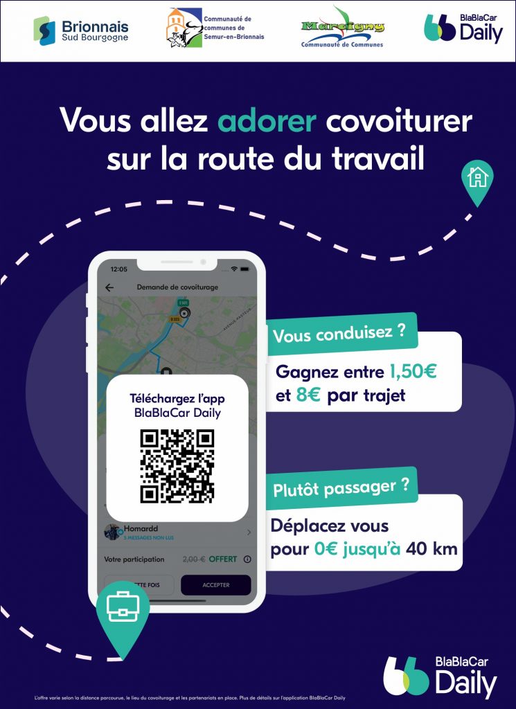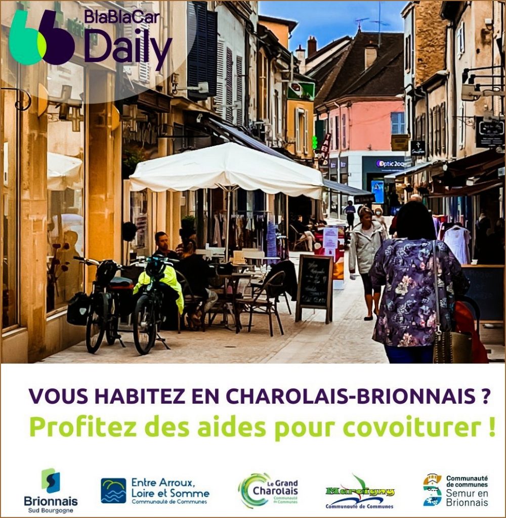 Vos trajets domicile / travail sur l’ensemble du Charolais-Brionnais sont subventionnés si vous covoiturez avec l’appli BlaBlaCar Daily.