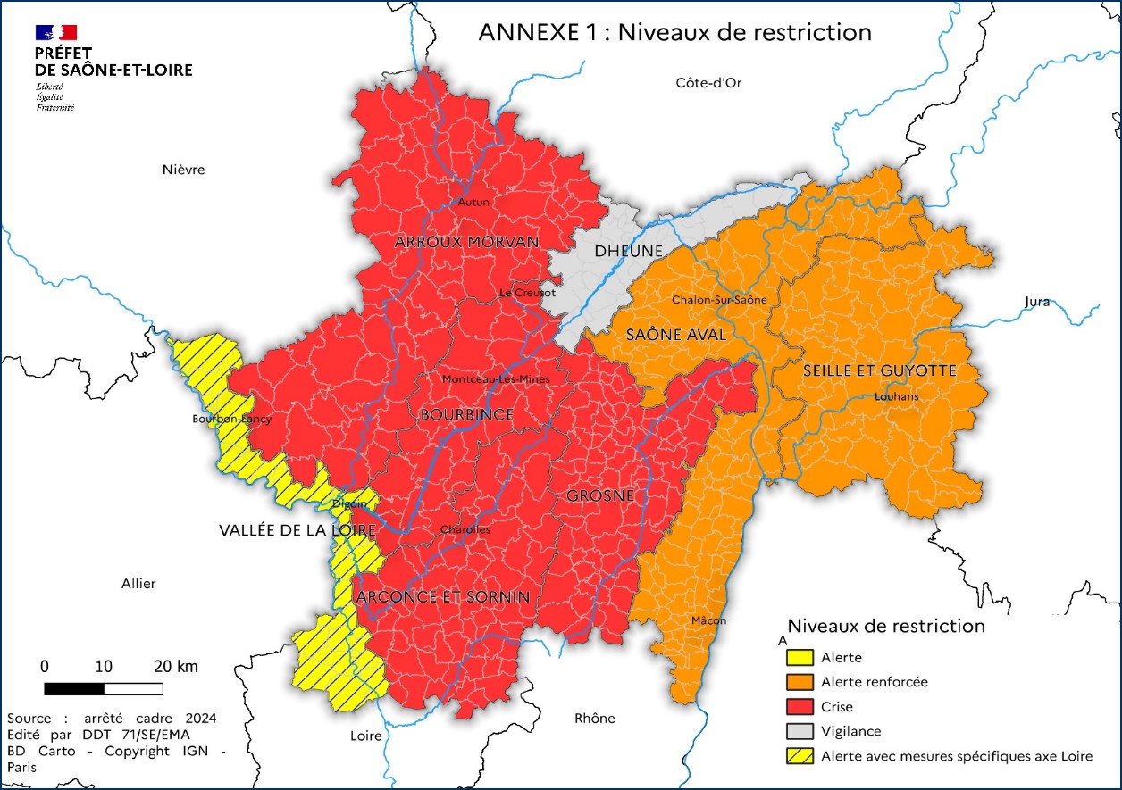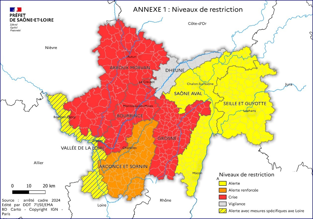 Le secteur « Arconce et Sornin » dont fait partie la commune de Poisson est placé au niveau de restriction « Crise ».