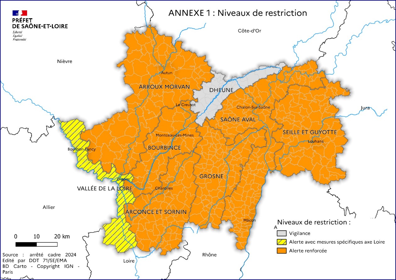 Le secteur « Arconce et Sornin » dont fait partie la commune de Poisson est placé au niveau de restriction « Alerte renforcée ».